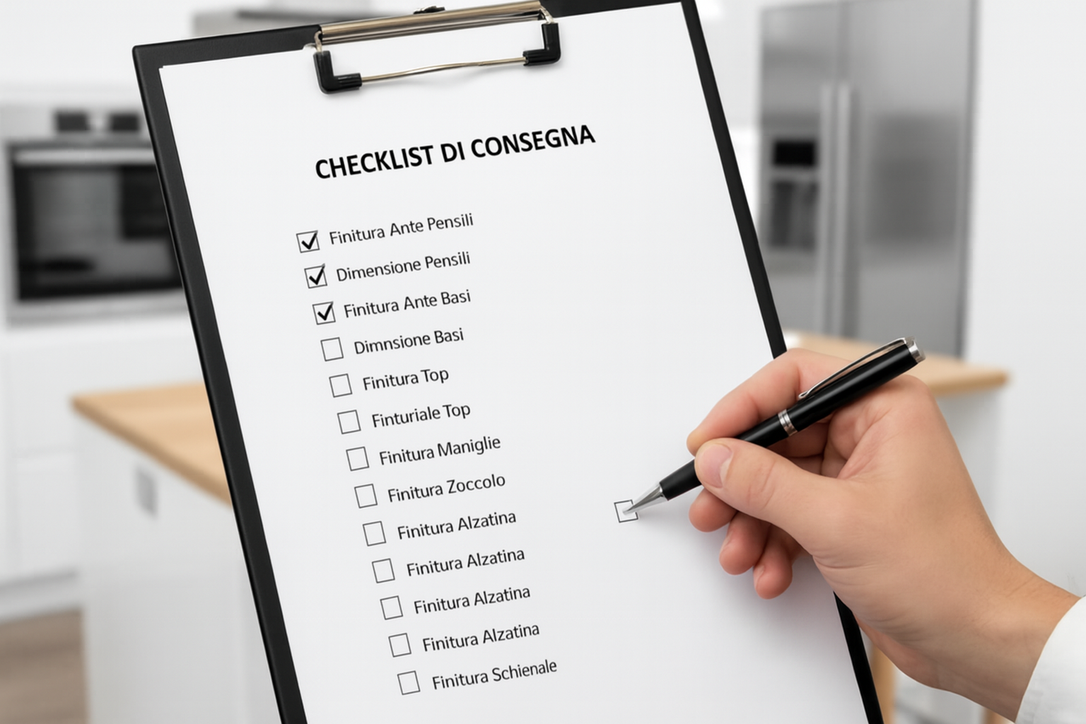 Prima della consegna, controlliamo insieme una checklist dettagliata. Nulla è lasciato al caso. La tua firma è la garanzia che tutto è esattamente come lo volevi
